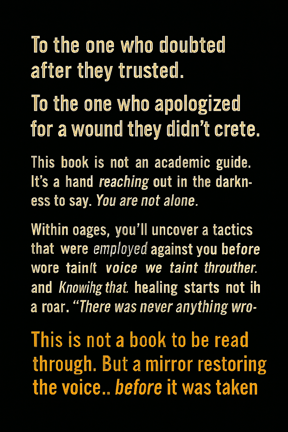 “There was never anything broken in you… just noise that made you forget your voice.”You reclaimed your mind.